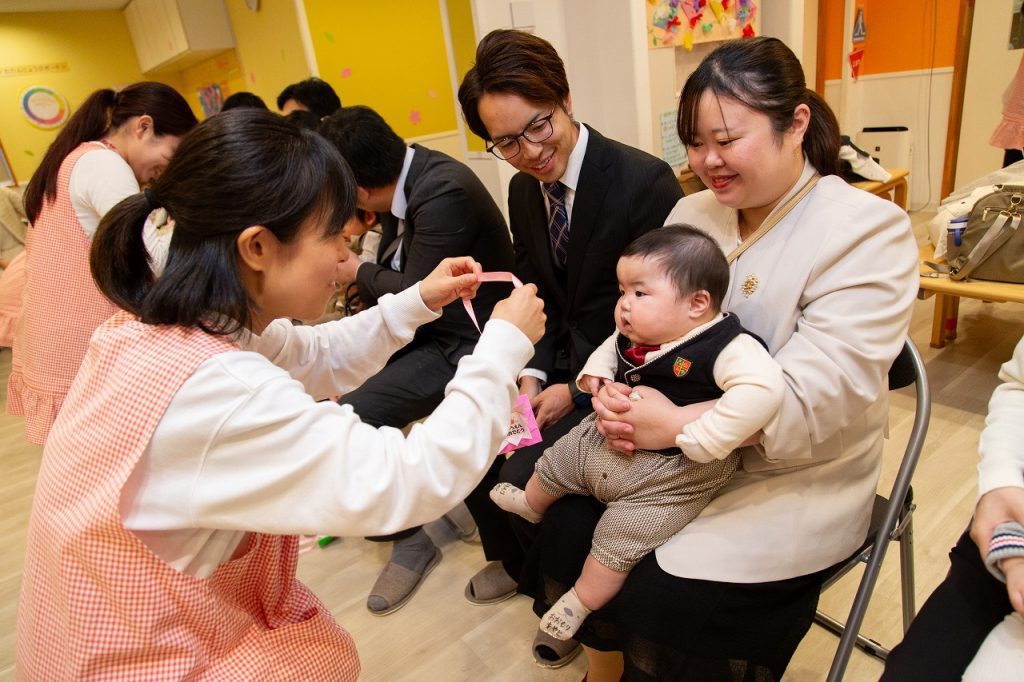 2025.05.12 4月の子どもたちの様子~入園式~ 令和7年度第11回入園式を行いました 初めての空間に少し緊張している姿の子どもたち入園メダルを首からかけてもらうと、興味津々に見つめていました これから、たくさん遊びましょうね