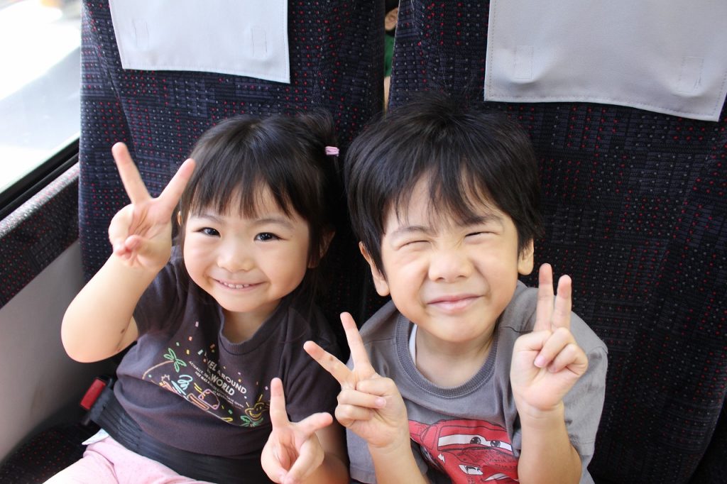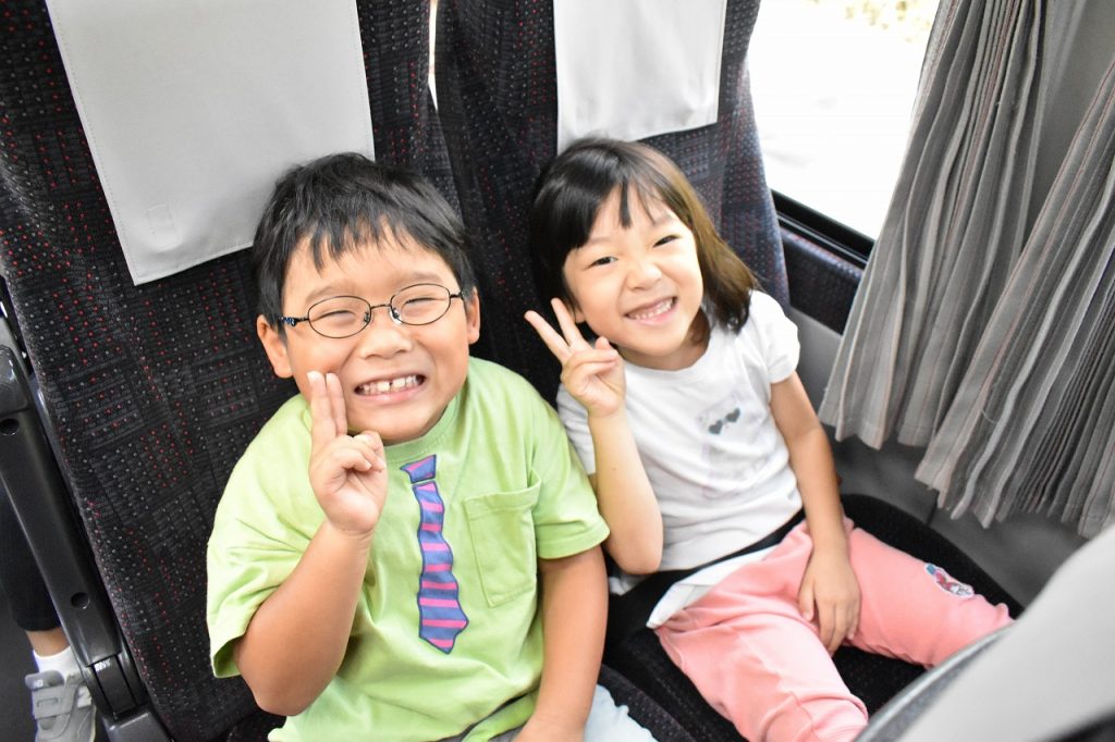 大きなバスにも大喜びです