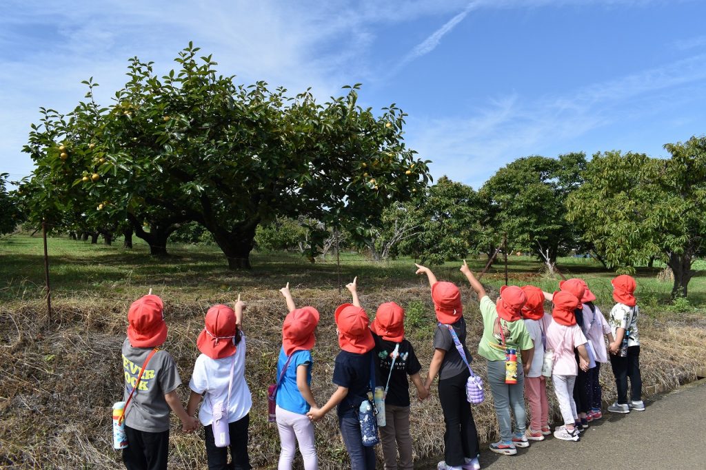 野菜や柿の木を見つけて、観察していました