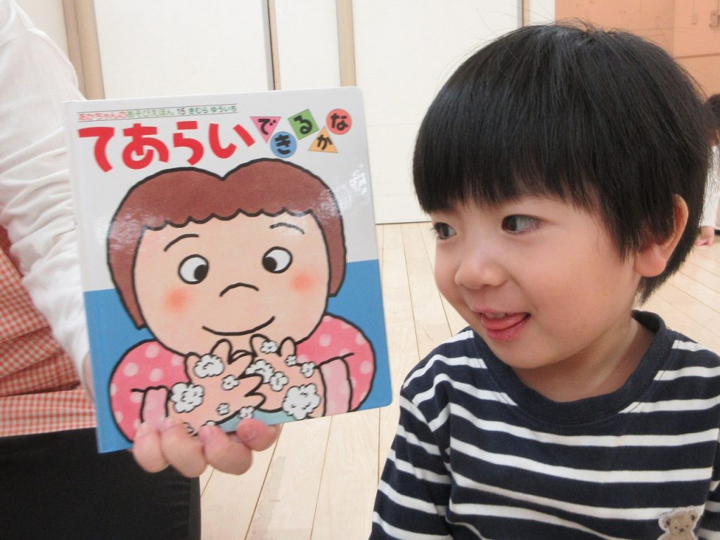 今回は、絵本『てあらいできるかな』を読みながら、