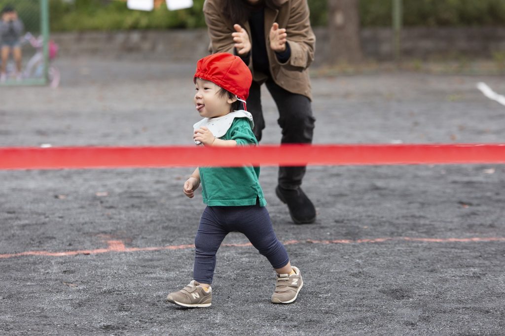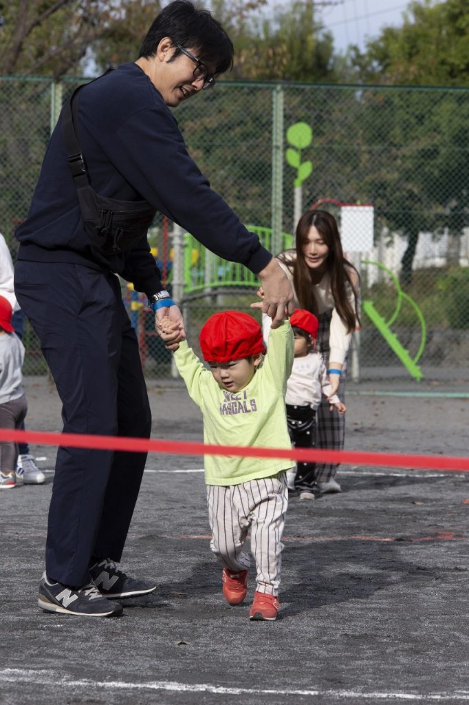 保護者の方が待つゴールまで元気いっぱい走りきりました