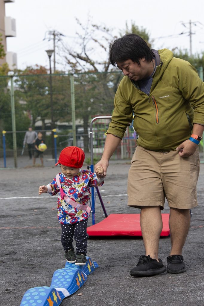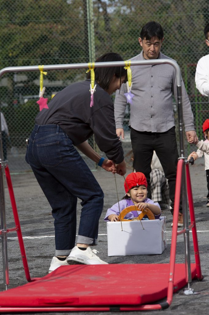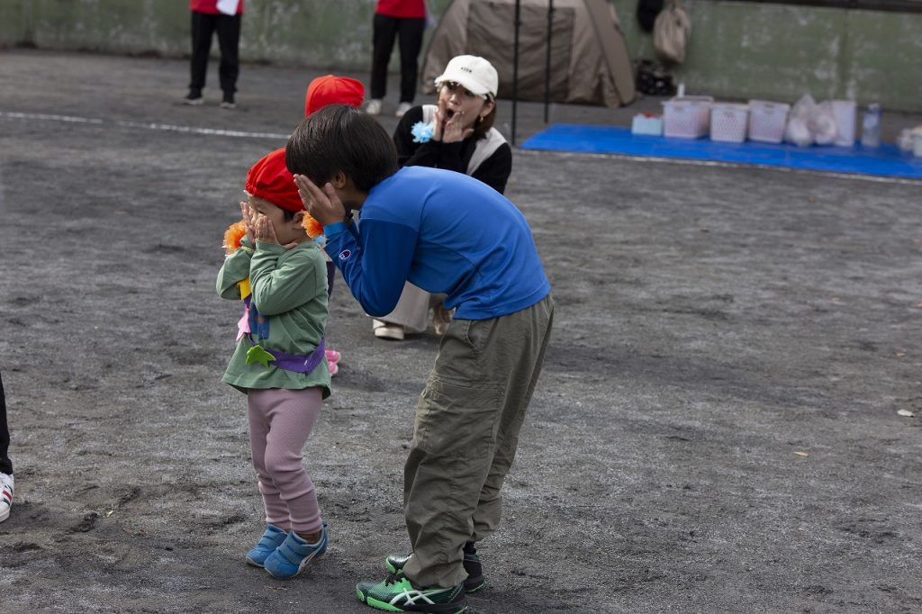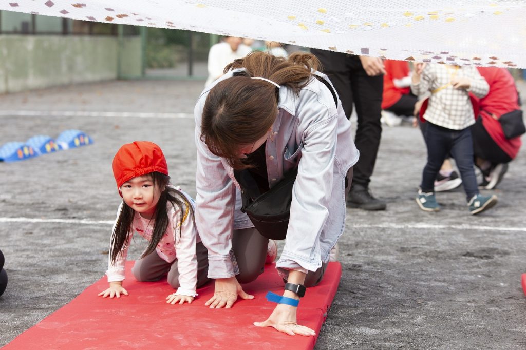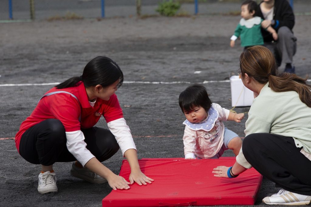 保護者の方の「おいでおいで」の声に、