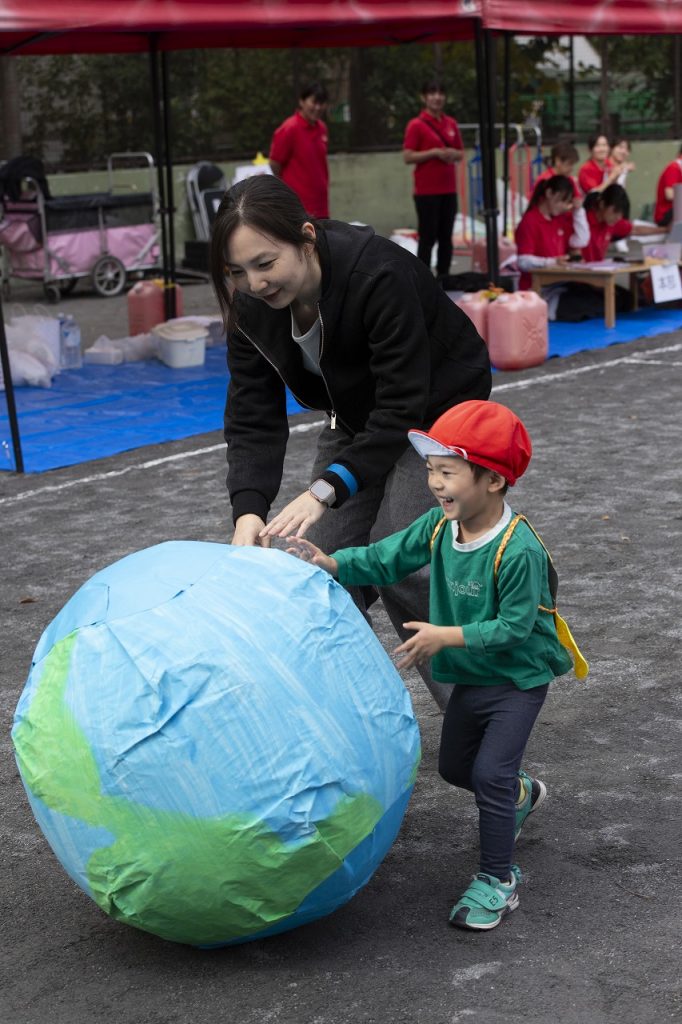 大きな地球を親子でダイナミックにコロコロ!