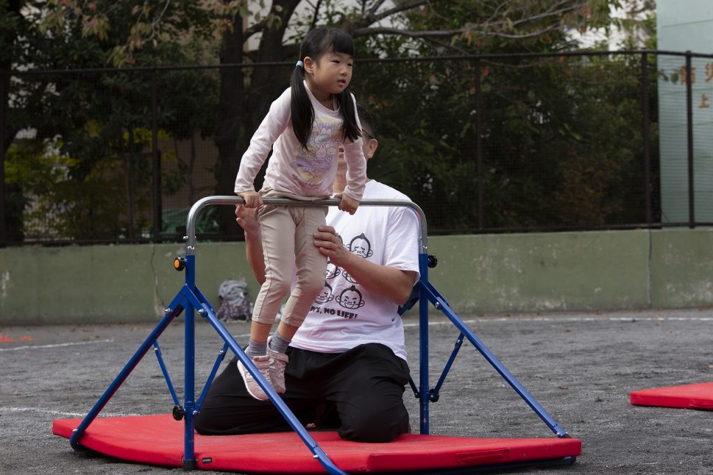 マットで側転、鉄棒では逆上がりから空中逆上がり、