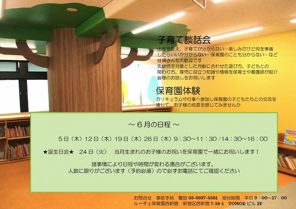西新宿園では、子育て談話会・保育園体験を開催しております
