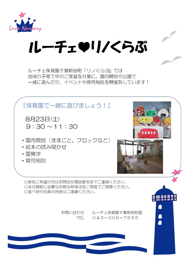 〈8月〉保育園見学会(育児相談会)・リノくらぶ