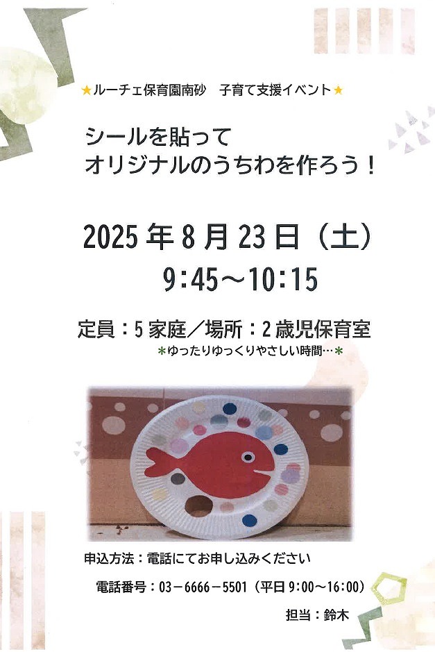 ※当日は保育園見学も可能です ご希望の場合は事前にお知らせください。
