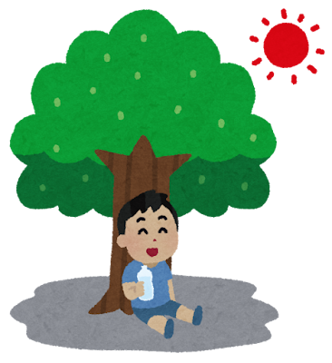 外出時は帽子をかぶり、暑さから身を守りましょう。日陰での休息も必要です。