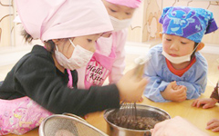 0歳児クラス(てんし組):9名 1歳児クラス(ほし組):12名 2歳児クラス(にじ組):12名 分園