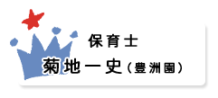 いつも優しい笑顔で、子ども達から人気者の一史先生。職員の間でも後輩の悩みを真剣に聞いてアドバイスをくれたり、困っていることがあるとすぐに飛んで来てくれたりと頼りになる存在です。苦手だったピアノも、子ども達が帰った後に練習を重ね、今では保育園のピアニストに!努力を惜しまず、ますます保育士として磨きをかける姿に、私も多くのことを学ばせてもらっています。