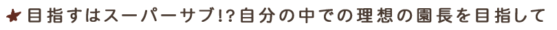 そして出した答えは…究極の聞き役であり、どんな役もこなすスーパーサブです。いつもと様子の違うお子さんがいたら、ありのままを受け止めてあげたいし、子どもの目線で一緒に遊びたい。保護者の方の顔が少しでもくもっていたら、こちらから困ったことがないか気にかけ、相談してもらえるようにしたい。担任ではない園長だからこそ、