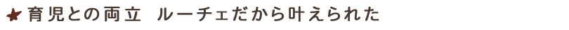 ただ、働くうえで一番心配だったのが、やはり仕事と家庭を両立できるのかということ。でもルーチェはそんなママにも優しく、今は子どもが帰ってくる時間には家にいられるようにシフトを組んでいただけているので、本当に助かっています。