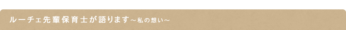 私は担任ではなく担任の先生が保育を進めている横で、散歩の準備などサポートを行います。自分の経験が生かせるこの仕事にとてもやりがいを感じ、充実した日々。我が子もルーチェの子もみんな大好きです。